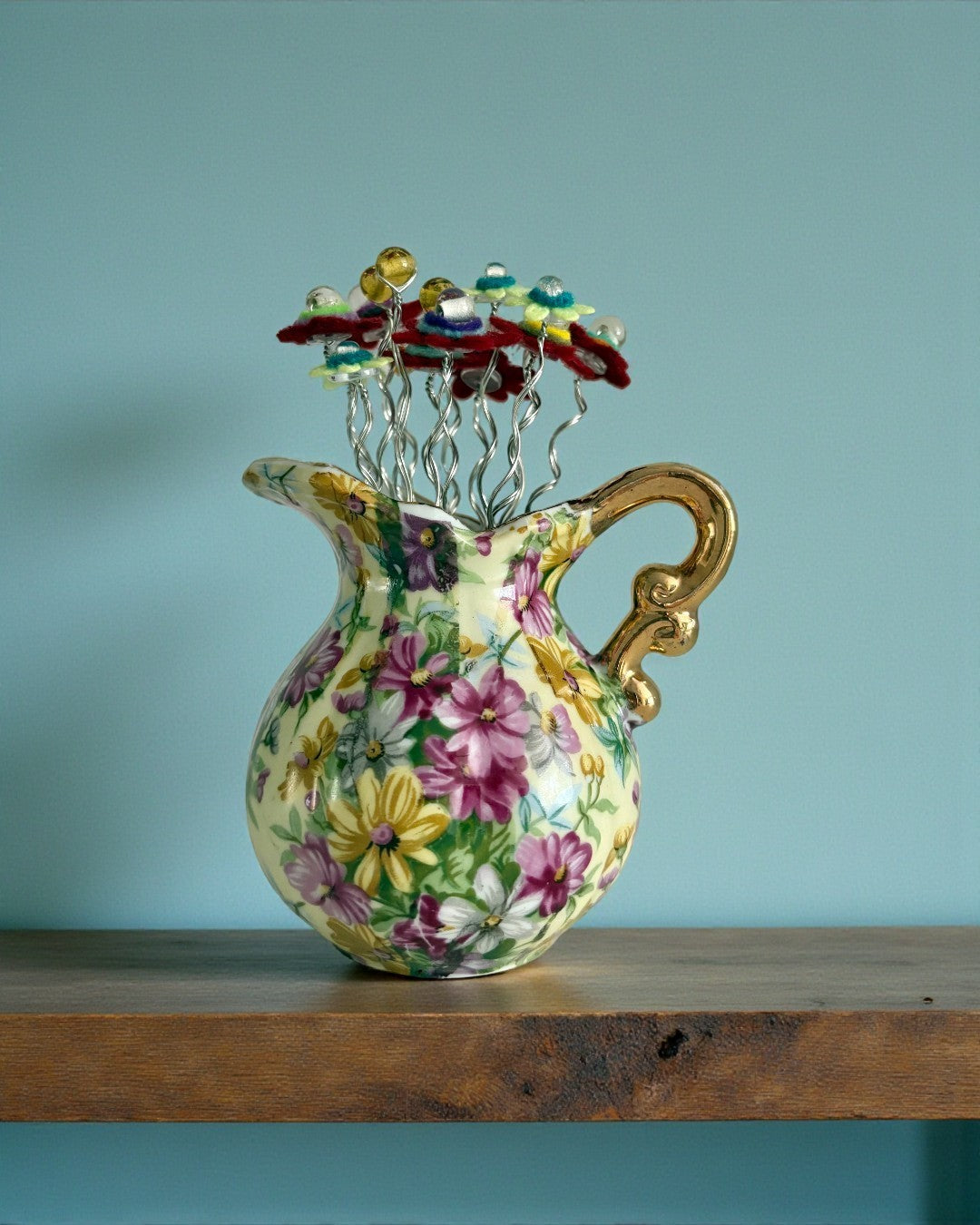 Flowered Pitcher with Dark Red Flowers by Melanie Fischer at Blue Moose Art Gallery