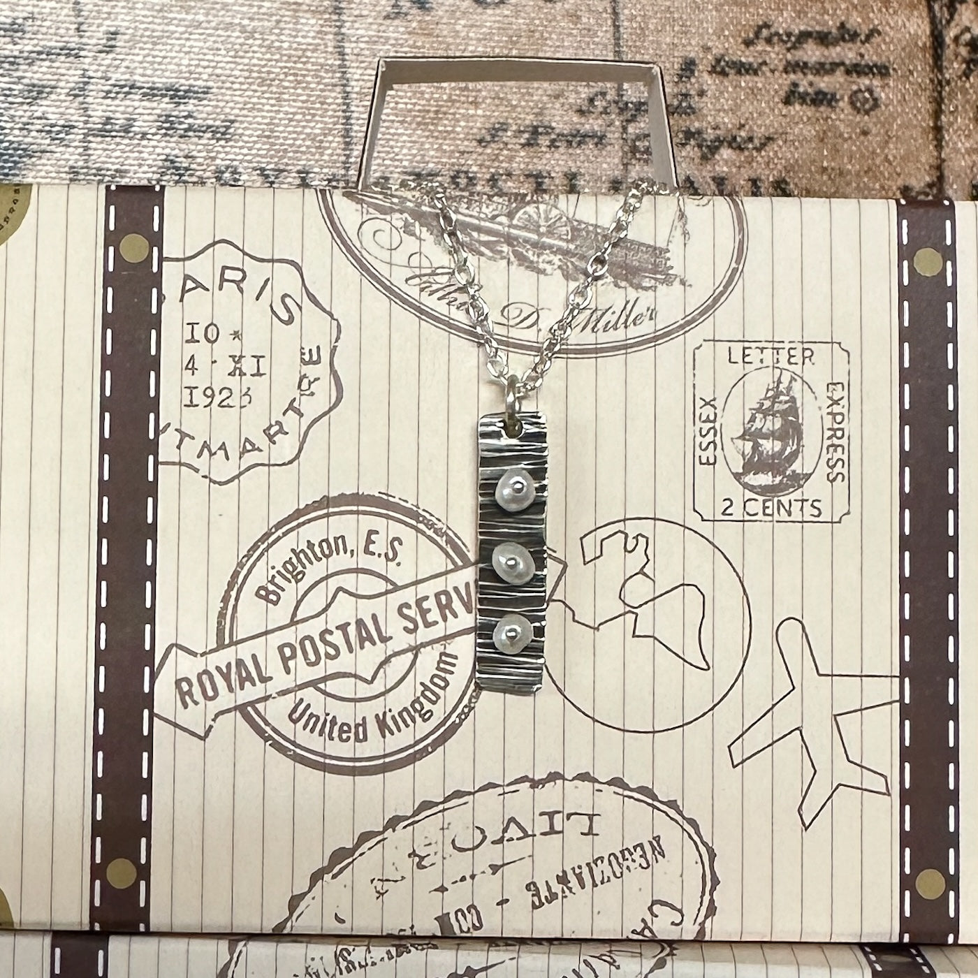 Kingston necklace- large- 3 pearl - sterling silver, cultured rice pearl by Mark Porter at Blue Moose Art Gallery
