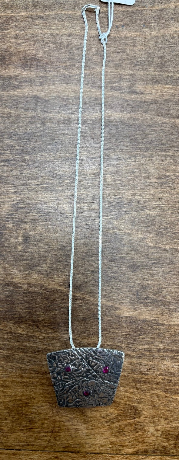 1.5 inch by 1.5 inch sterling shield with synthetic stones pendant on 18 inch sterling chain. by Lynn Monthei at Blue Moose Art Gallery