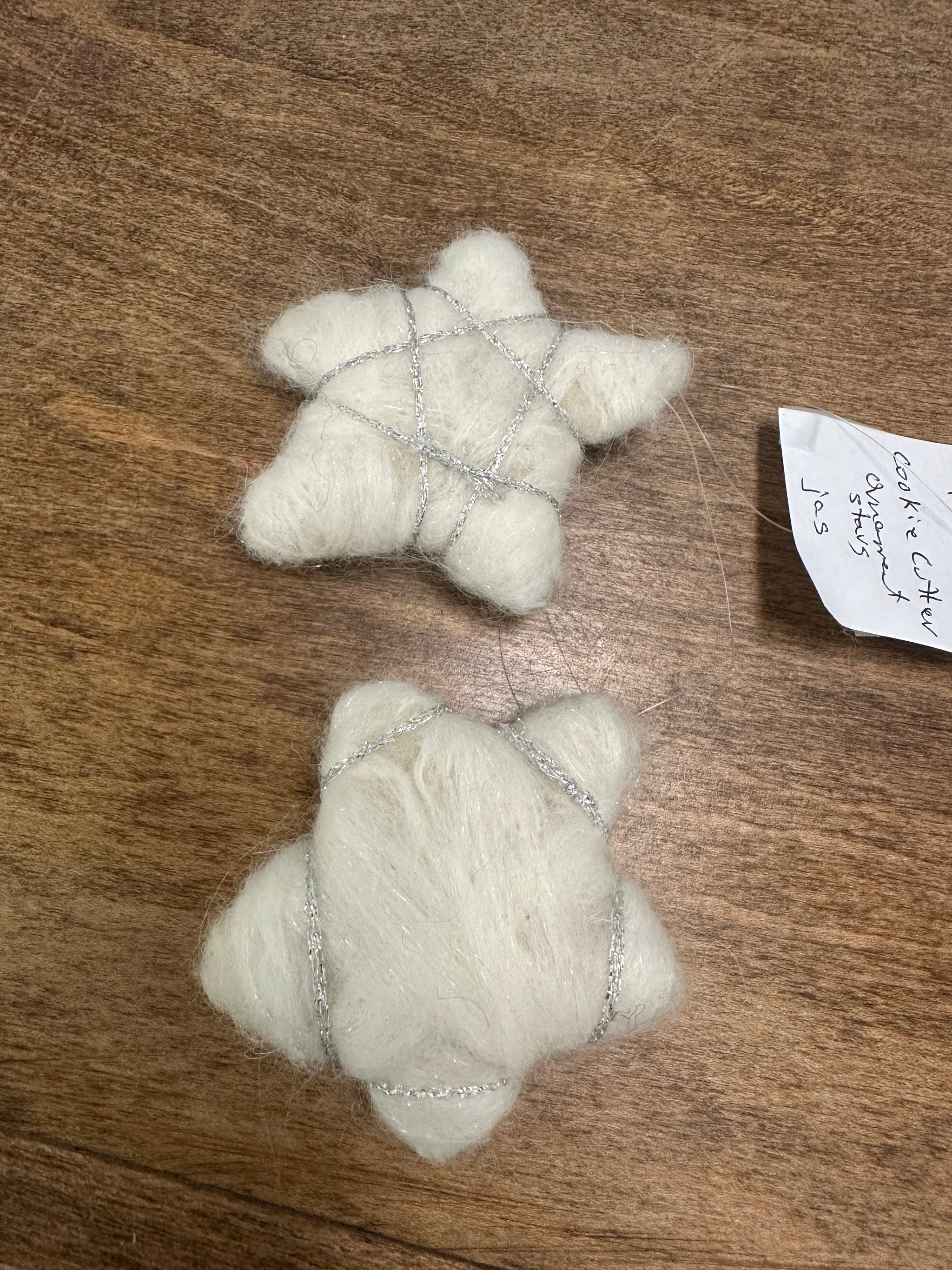 Needle-felted Stars to help celebrate the holidays. 100%wool. 6"by Judy Scherpelz at Blue Moose Art Gallery