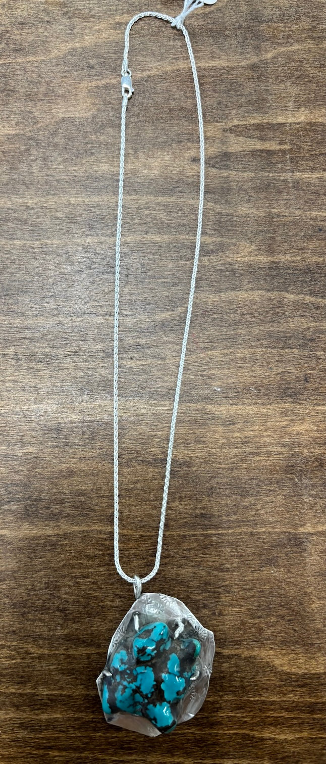 1 inch by 1 inch turquoise pendant on 18 inch sterling chain. by Lynn Monthei at Blue Moose Art Gallery