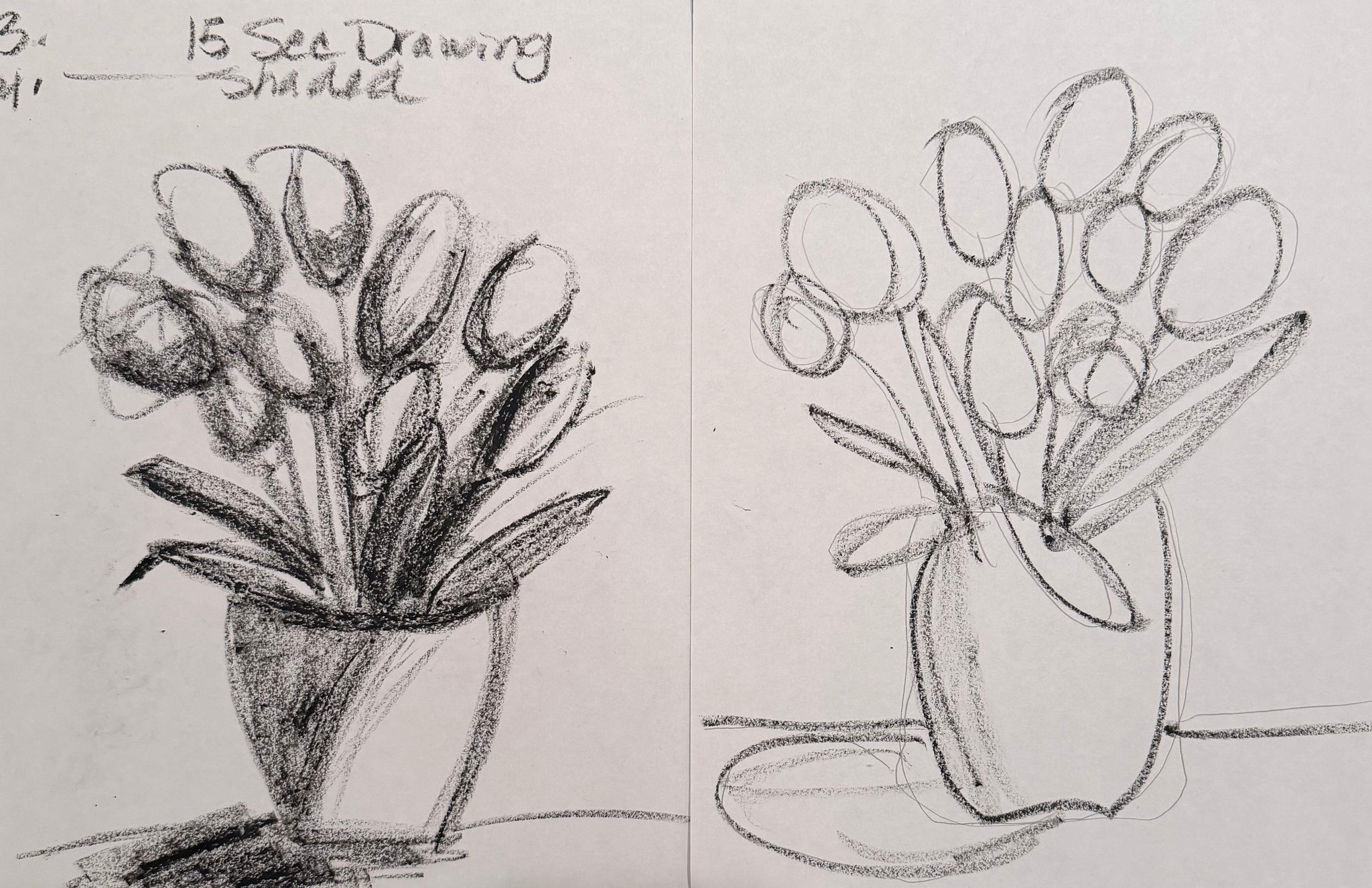 Celebrate, creativity, connection, and color just in time for Valentine’s Day in this immersive acrylic painting class focused on bold, textured tulips, and expressive painting techniques. We’ll begin the class with a series of loose, pressure – free drawings designed to warm up the hand and loosen the drawing process. Through continuous – line drawing and a quick 15–second gesture sketch, you’ll learn to observe tulips as flowing forms filled with movement, rhythm, and energy. From there, we’ll explore, adding shadows and depth, preparing your sketch or a dynamic transition into paint.