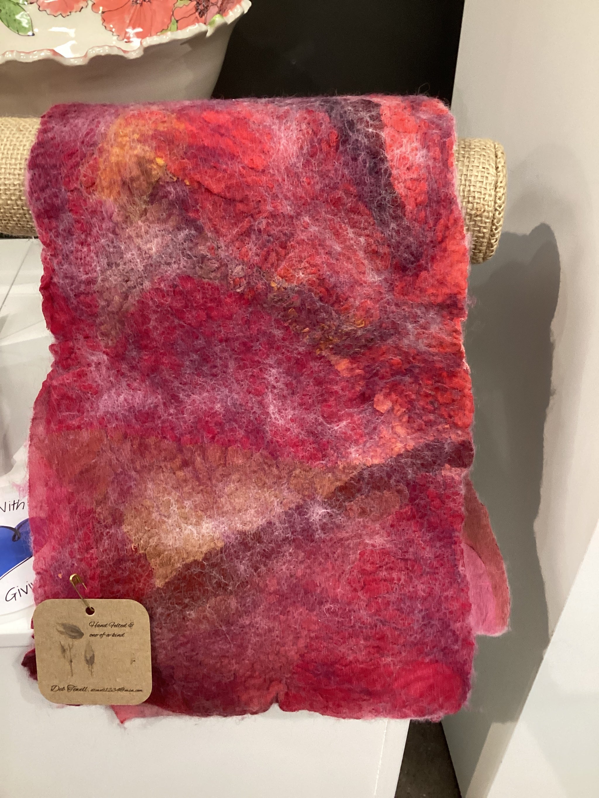Wet-felted scarf using silk scraps and merino wool fiberby Deb Tewell at Blue Moose Art Gallery