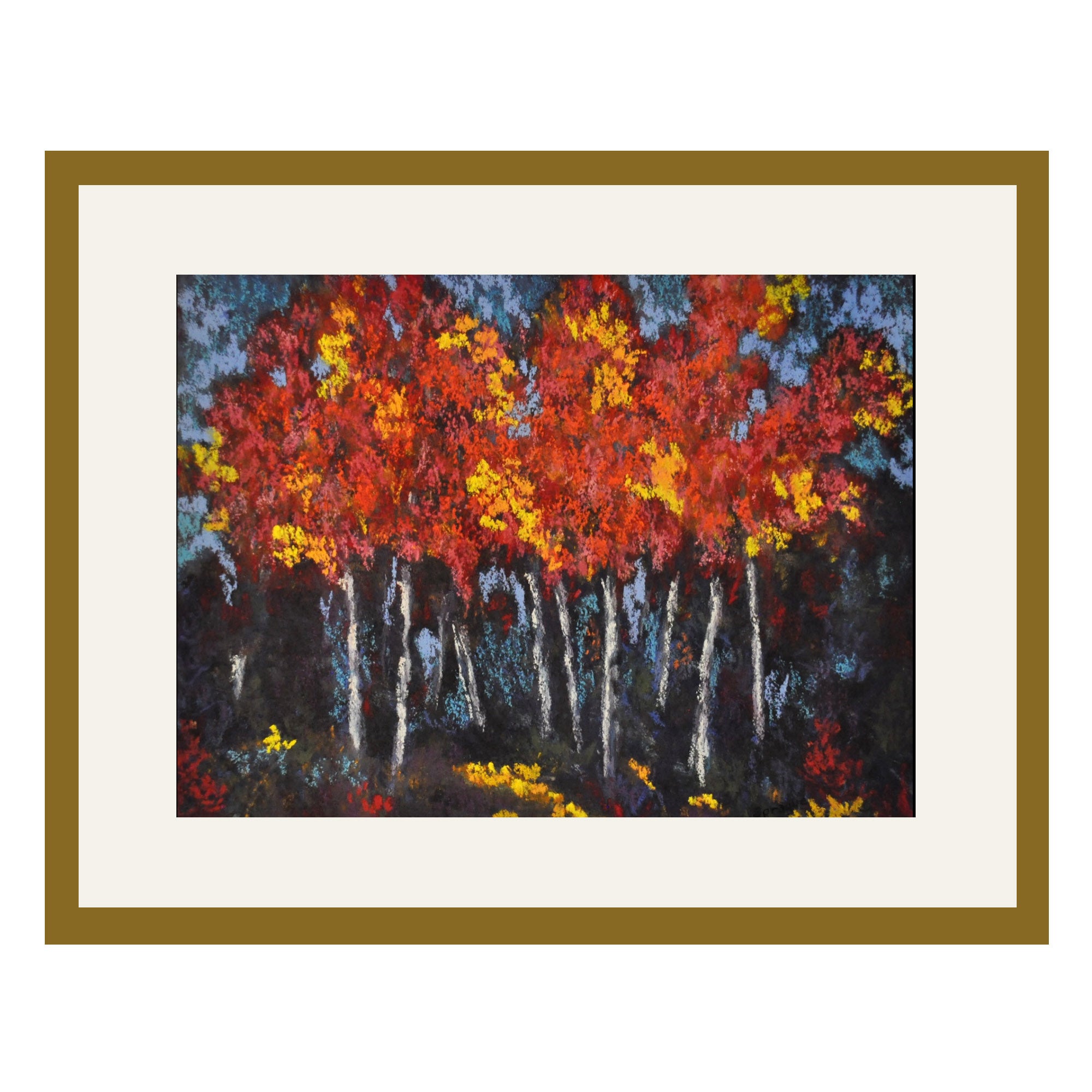 Framed original impressionistic pastel painting of aspen forest, matted and framed to 16x18.