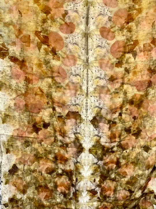 Silk scarf botanical printed. Dirty pot method. Care: Hand wash in warm water with ph neutral detergent. Line dry or place in dryer on delicates. Iron on silk setting. by Paula Morris at Blue Moose Art Gallery