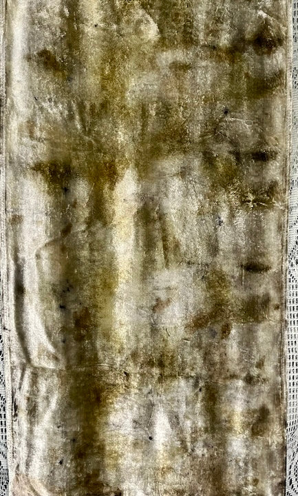 Silk velvet scarf botanical printed. Dirty pot method.