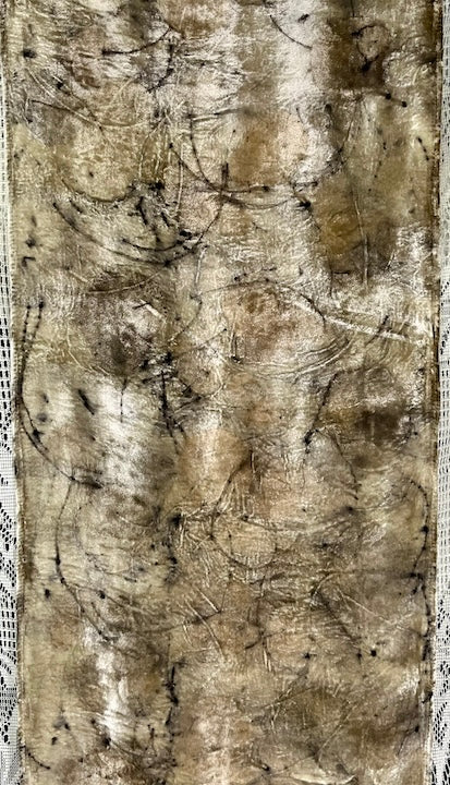 Silk velvet scarf botanical printed. Dirty pot method.