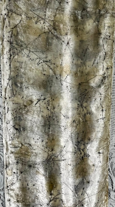Silk velvet scarf botanical printed. Dirty pot method. Care: Hand wash in warm water with ph neutral detergent. Line dry or place in dryer on delicates. Iron on silk setting. by Paula Morris at Blue Moose Art Gallery