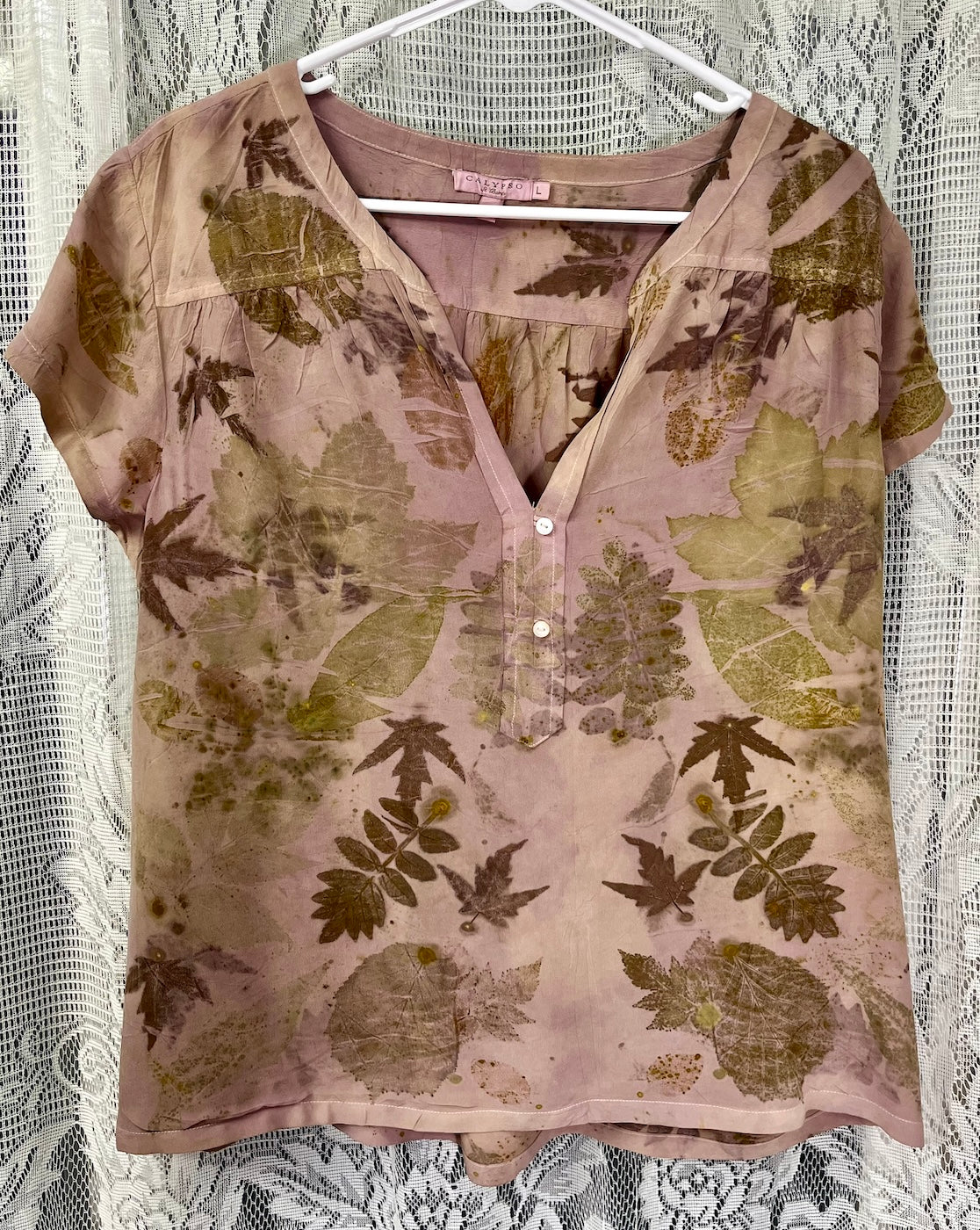 Up-cycled Eco dyed and printed silk blouse.