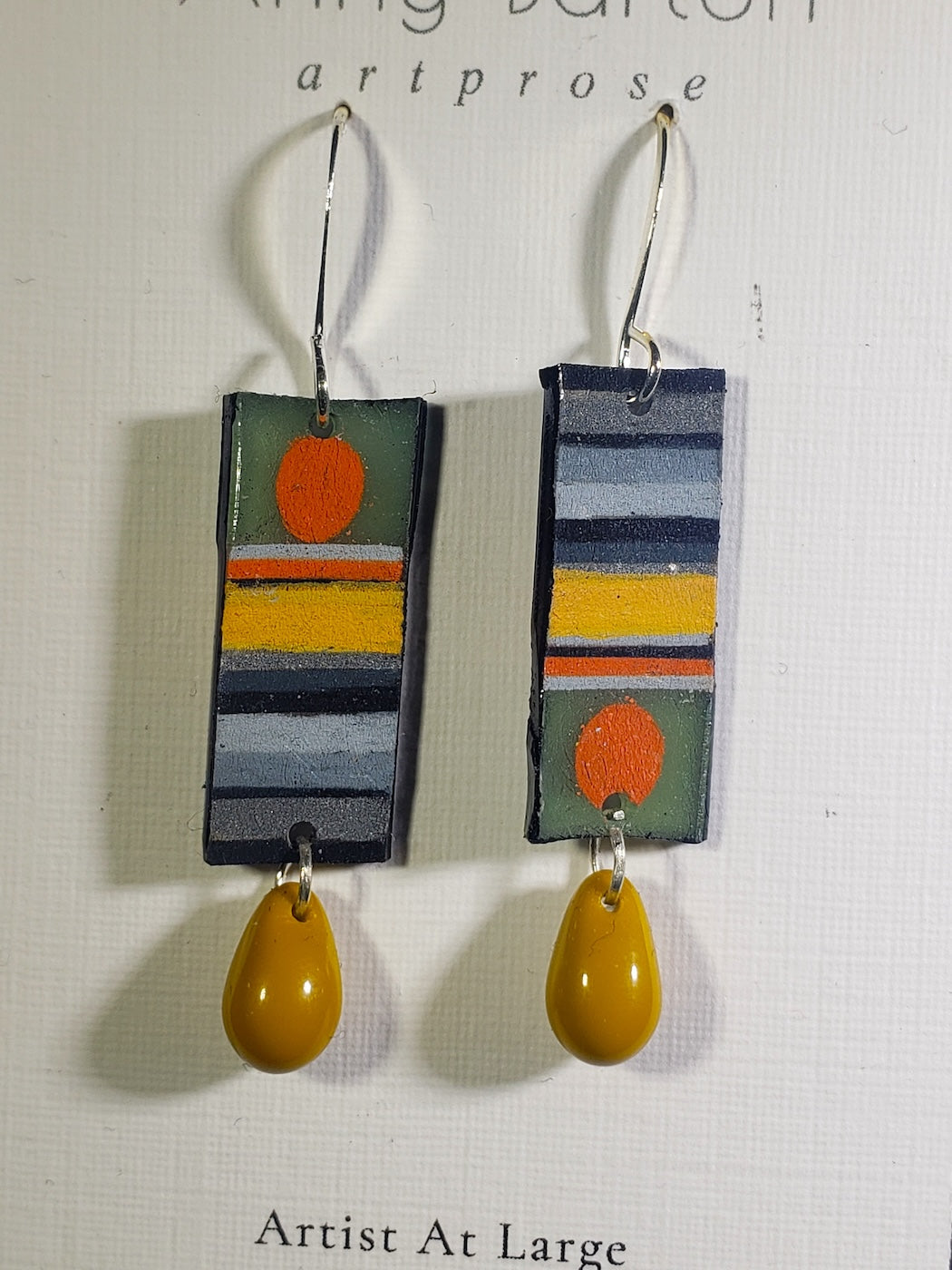 Muted color and orange circles with mustard teardrop beads.