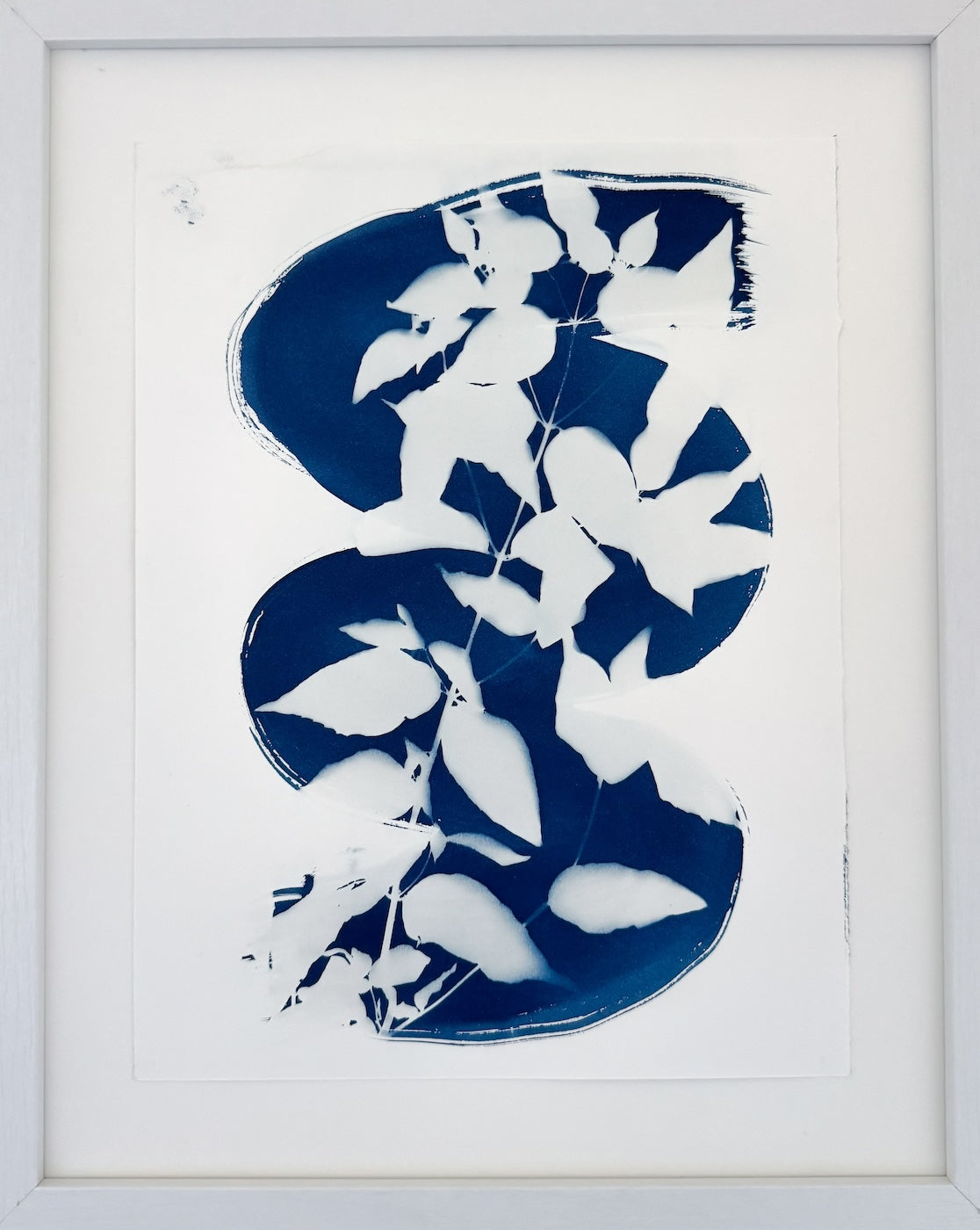 Cyanotype on cold press watercolor paper. Original sun printed cyanotype. Wood and glass frame. 11x14 inches by Sarah Cribari at Blue Moose Art Gallery