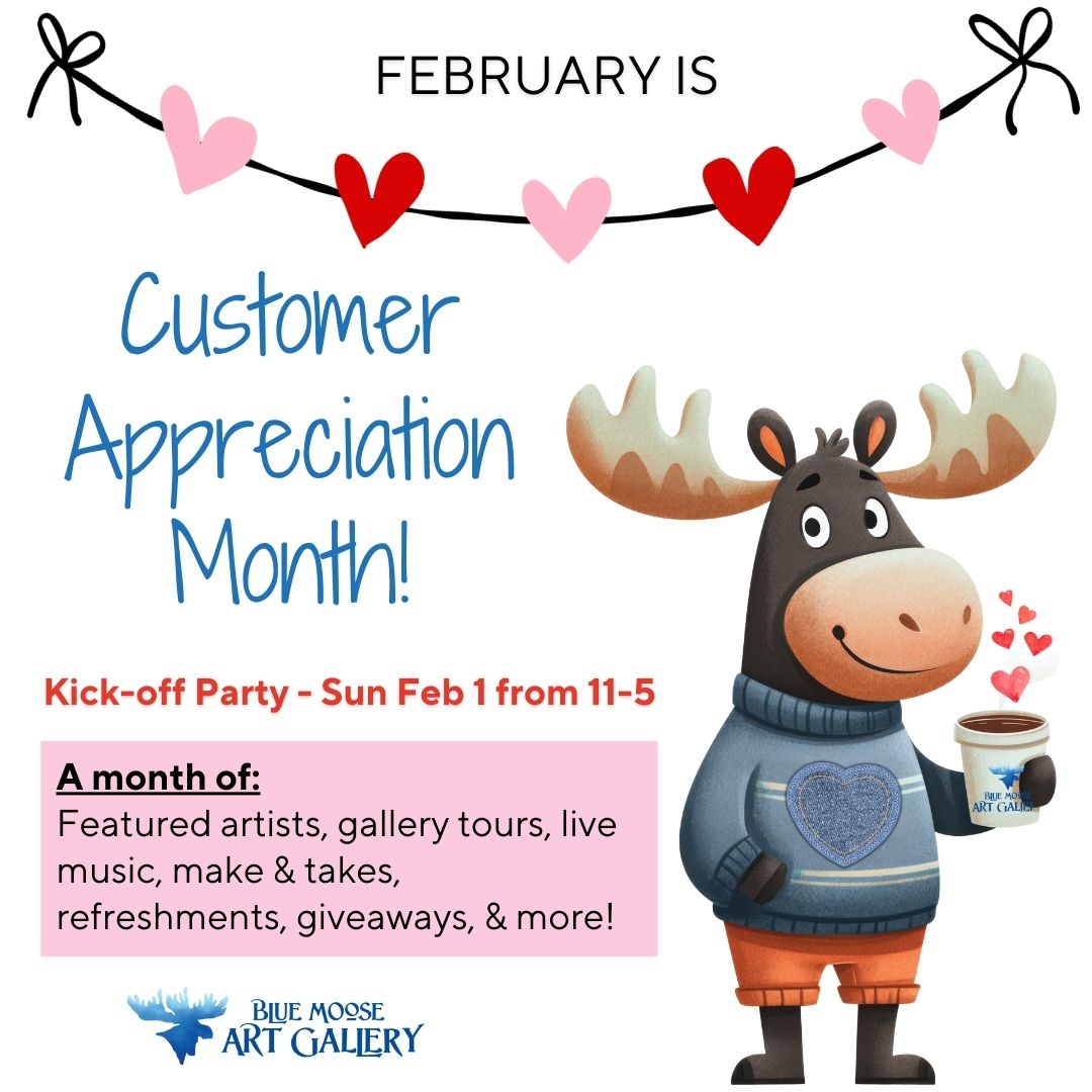 The Blue Moose Gallery hosts many fun events throughout the year. Mark your calendars for what's coming up!
